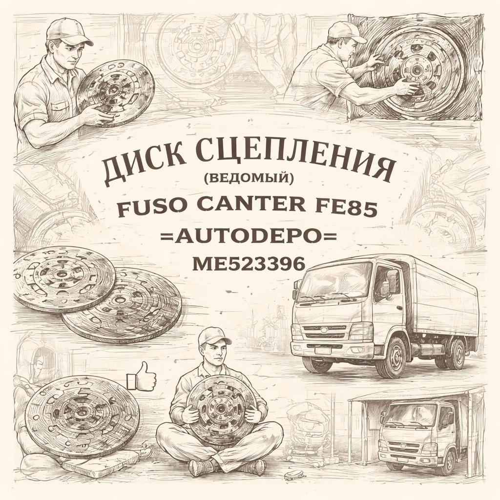 Ведомый диск сцепления AUTODEPO для автомобилей Fuso Canter FE85. Основное назначение — обеспечивать плавное и четкое включение передач, защищая двигатель и трансмиссию от перегрузок. Каталожный номер диска — ME523396.