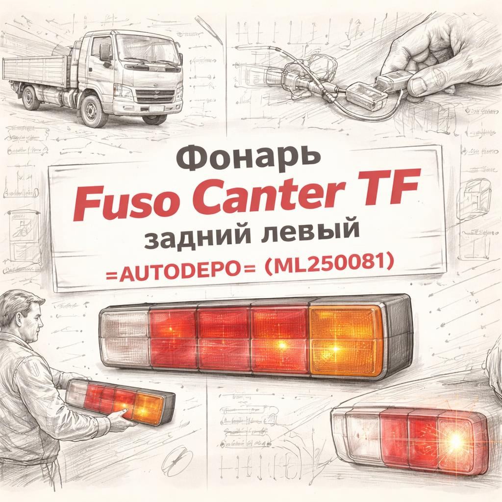 Задний левый фонарь AUTODEPO для автомобилей Fuso Canter TF. Обеспечивает надлежащую визуализацию габарита автомобиля сзади, обозначая его присутствие на дороге. Четко выполненные секции стоп-сигнала, габаритных огней и поворотников улучшают безопасность движения. Каталожный номер фонаря — ML250081.