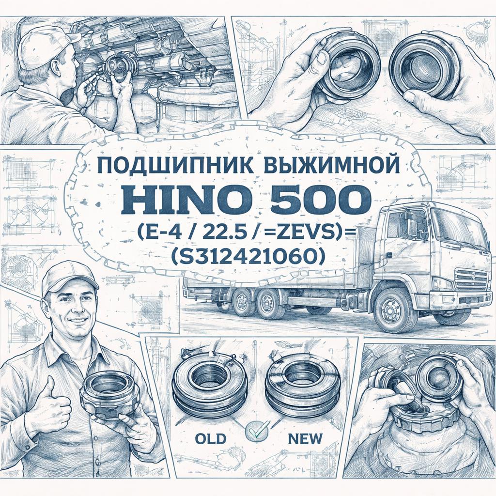 - Применение: автомобили HINO 500 (E-4/22.5), выжимной подшипник сцепления