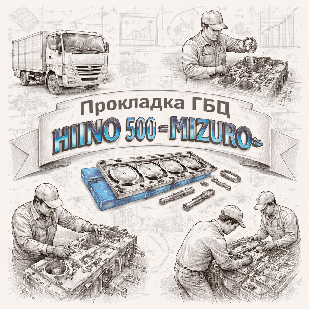 Рекомендуется для двигателей и модификаций, указанных в заводской документации для HINO 500. Перед установкой сверяйте артикулы и параметры прокладки с требованиями конкретного двигателя.