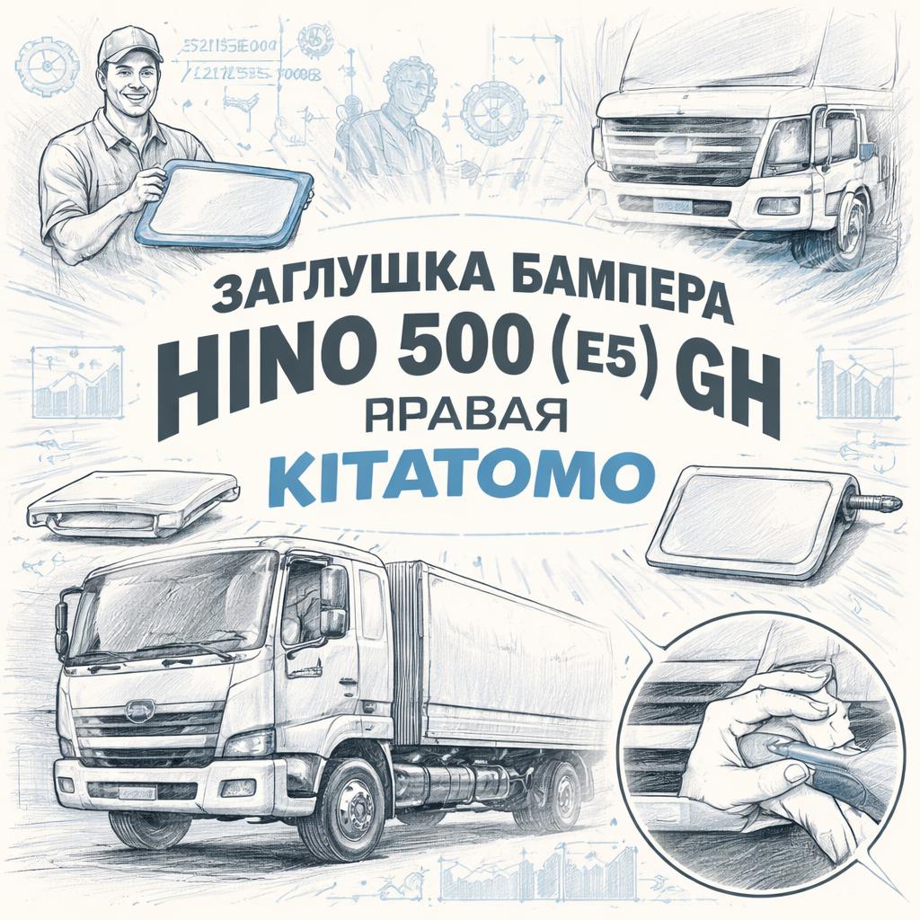 Надёжная правая боковая заглушка бампера, разработанная для установки на грузовики HINO 500 (E5) GH. Обеспечивает восстановление внешнего вида и защиту кузова в местах крепления бампера.