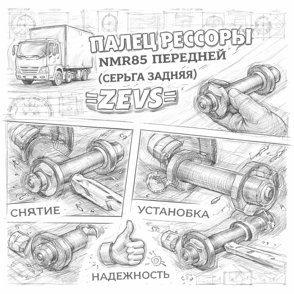 Палец рессоры NMR85 передней (серьга задняя) =ZEVS= (8980343410)