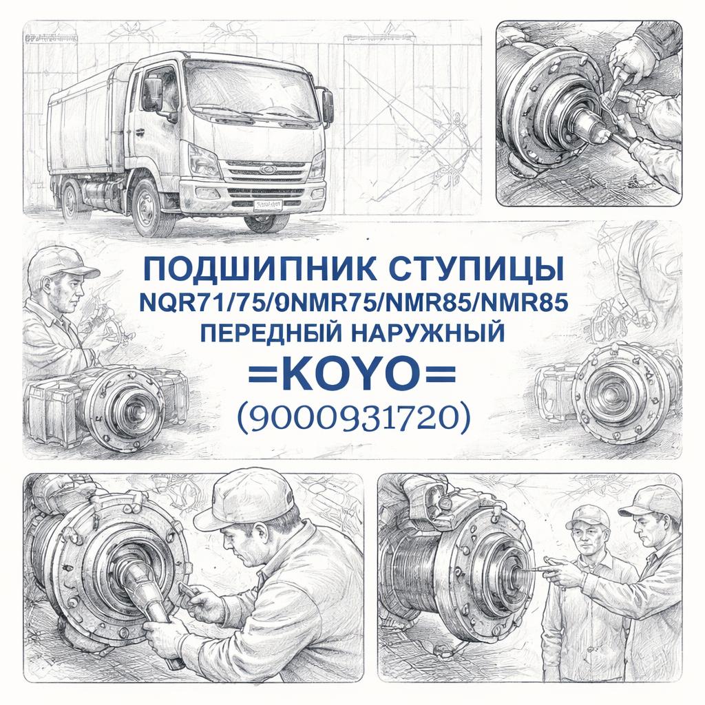 Если вам нужна надежная и долговечная деталь для передней ступицы, данная позиция от KOYO по артикулу 9000931720 — оптимальный выбор для моделей NQR71, NQR75, NQR90, NPR75, NLR85, NMR85. Высокое качество изготовления и соответствие заводским требованиям обеспечивают уверенную и безопасную эксплуатацию транспортного средства.