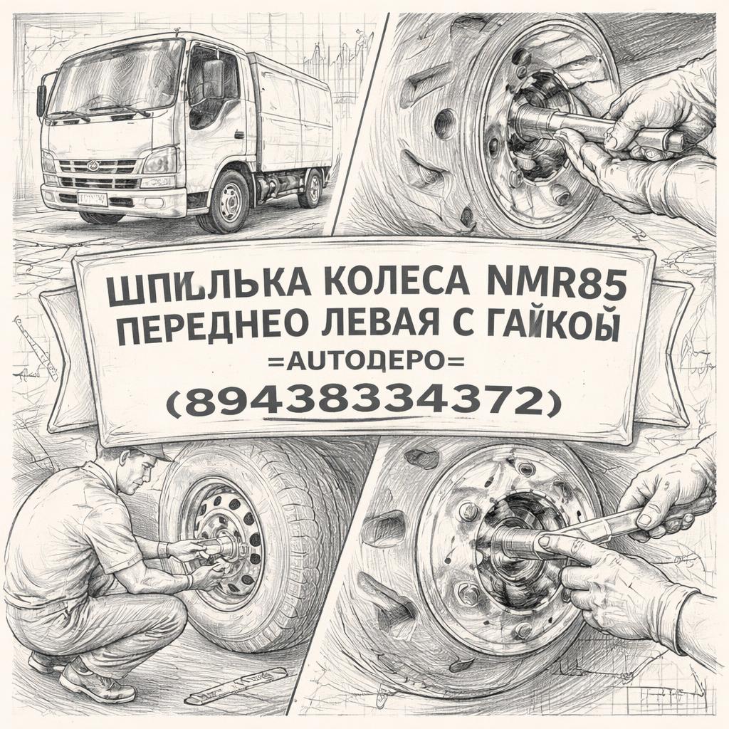 Заменяемая шпилька переднего колеса (левая) в комплекте с гайкой — надежная запасная часть для коммерческих автомобилей серии NMR85. Изготовлена с учётом заводских допусков для гарантии корректной установки и долговечной эксплуатации.