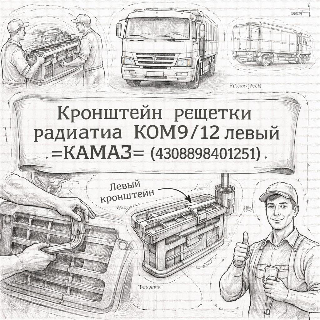 Оригинальный кронштейн левой стороны для установки радиаторной решетки на модели КОМ9/12. Предназначен для надежного крепления решетки, обеспечивает точную стыковку и долговечность эксплуатации в условиях дорожных нагрузок.