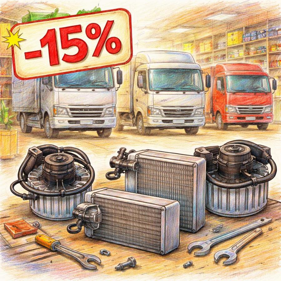 Скидка 15% на моторчики и радиаторы отопителя исузу, фусо, хино